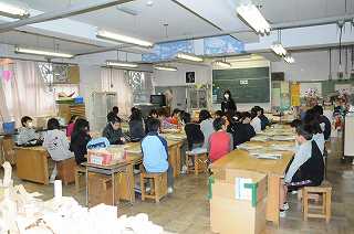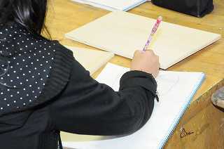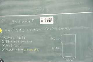 「デザインチェアー」を作ります。まず、カタチを決め、電動糸のこを使って切っています。