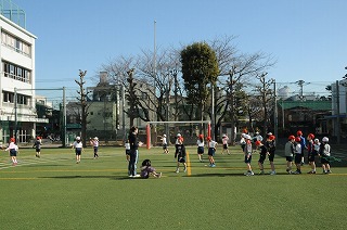 校庭でなわとびの練習をしています。
