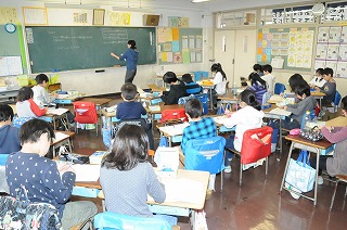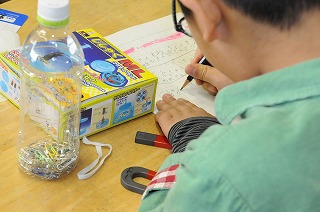 磁石で何が付くかを確かめる実験の準備をしています。