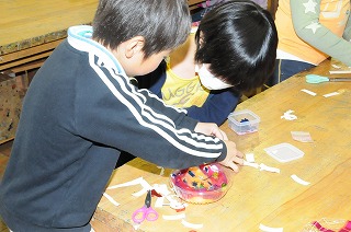 「お気に入りパック」というテーマで、透明なパックにカラフルな材料を入れて、お気に入りパックを作っています。