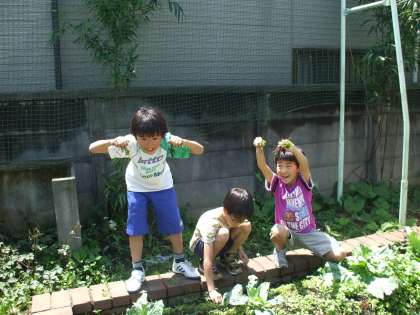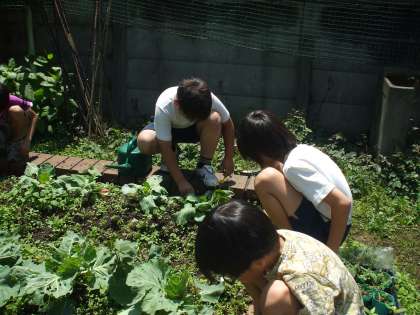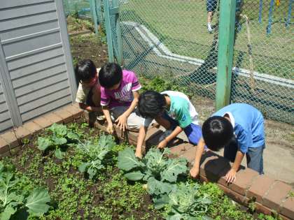 休み時間に3,4年生の児童数名がキャベツ畑の草むしりをしてくれました。