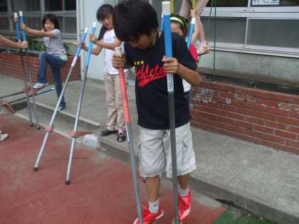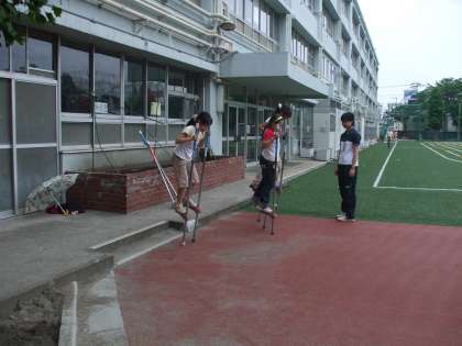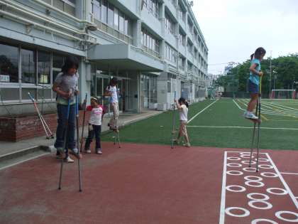 今週から竹馬遊びが復活しました。
