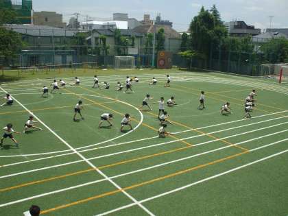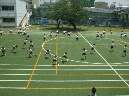 校庭で隊形移動を行いました。