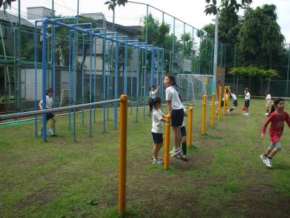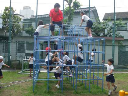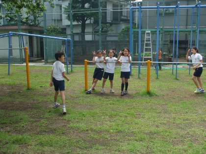 鉄棒やジャングルジムで楽しそうに遊んでいました。
