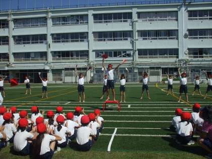 紅組、白組の応援団長を中心にエール交換の練習を行いました。