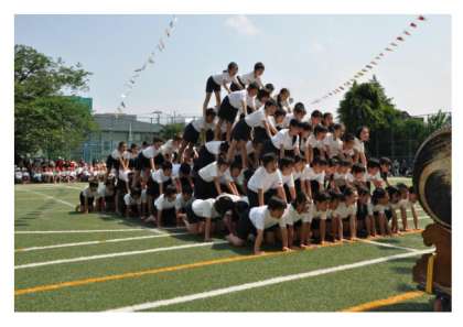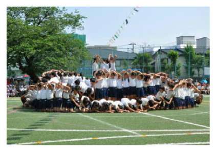 「組体操を成功させるぞ!」「おー!!」のかけ声とともに組体操2010『絆』が始まりました。