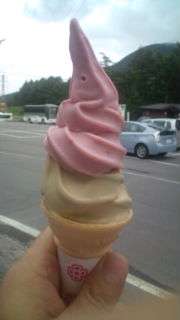 14:00 湯の丸におりてきました。みんなでソフトクリームタイムです。好きなアイスの組み合わせを選びました。美味しい!!