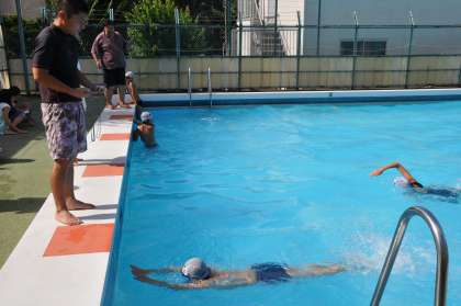 水慣れ運動の後にクロール・平泳ぎの記録を測りました。