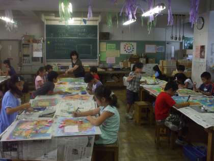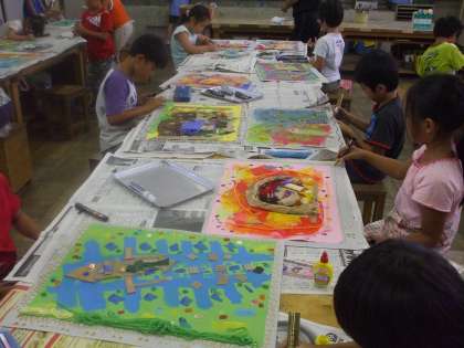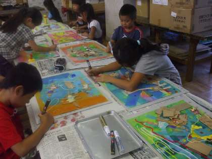 「ふしぎないきもの」が完成したので名札書きと額縁作りを行いました。