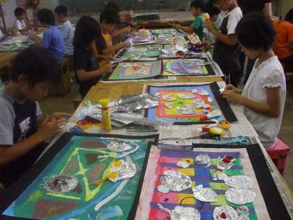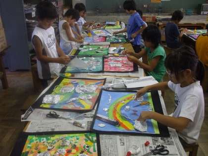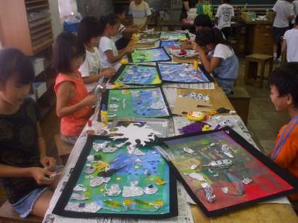 「きらきらのなかまたち」というテーマで貼り絵作品を仕上げました。