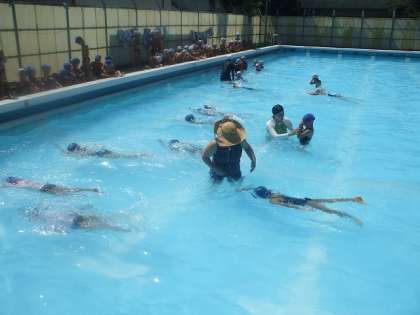 水慣れ運動をした後にバタ足やけのびを行いました。
