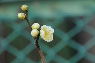校庭の白梅の最初の花が咲きました。