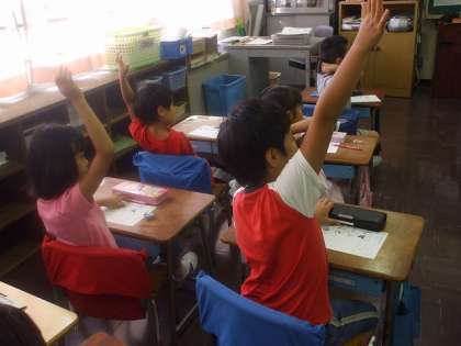 「マ」のつく単語を勢いよく手を挙げて発言していました。