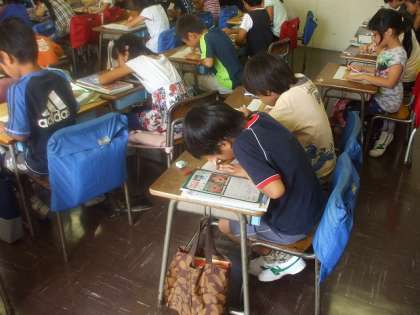 まっすぐ線を引いたり、目標に合わせて線を書いたりするのに苦戦していましたが、子どもたちは集中して真剣に取り組んでいました。