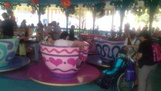 14:40 ディズニーランドの中にいます。コーヒーカップに乗っています。