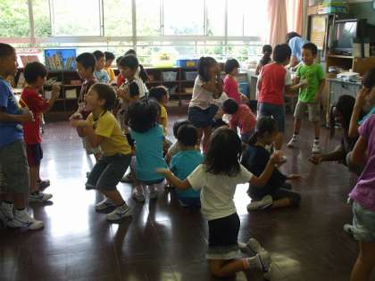 子どもたちは気合いをいれて英語で「じゃん、けん、ぽん」と言っていました。