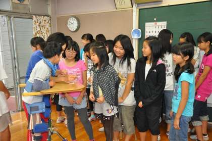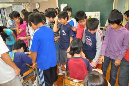 先日、6年生の教室に自己紹介カードを届けましたが、今日は6年生が自分たちで作った名刺を2組の教室まで渡しに来てくれました。