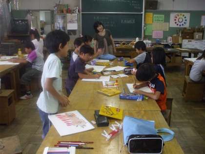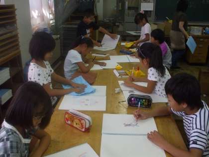 「くしゃくしゃからうまれたふしぎないきもの」の説明を聞いたりスケッチブックにデザイン画を描いたりしました。