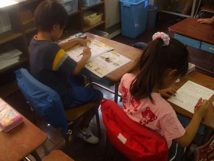 計算スキルやプリントを使って今まで習ったたし算・引き算の復習をしました。