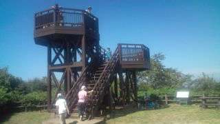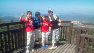 11:40 富山山頂です。お昼ご飯を食べ終わっ人から展望台で景色を楽しんだり、おにごっこをしたりしています。