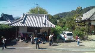 12:50 富山を下山し福満寺に到着しました。子どもたちは水分補給中です。