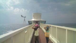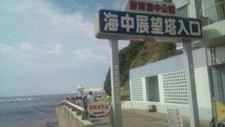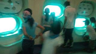 9:40 勝浦海中公園にいます。海中展望塔で海の中から魚を観察しています。