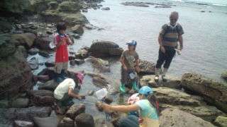 10:00 勝浦海中公園にいます。子どもたちは、磯観察に夢中です。