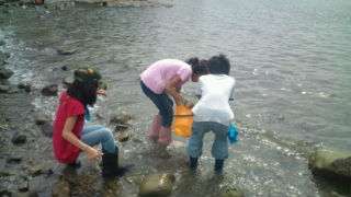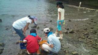 10:20 勝浦海中公園で観察した生き物を海に返しました。