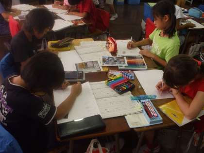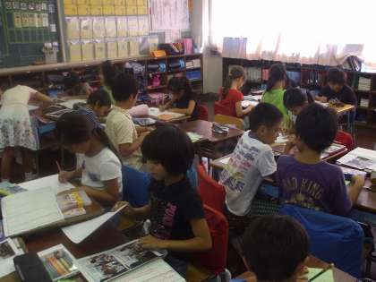 今まで調べてきた資料を活用して自ら考えてつくっていました。