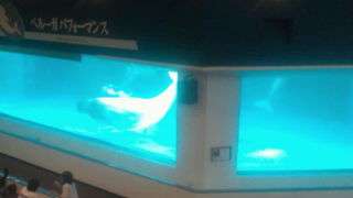 11:40 鴨川シーワールドの中にいます。ベルーガのショウを見学しています。