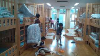 8:10 朝食後、部屋の掃除や荷物整理をしています。子どもたちはとてもよき働いています。