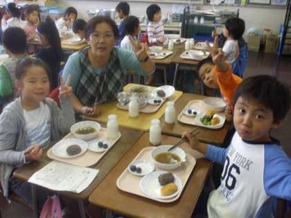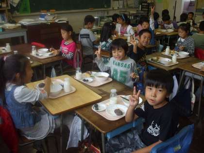 みんな楽しそうに給食を食べていました。