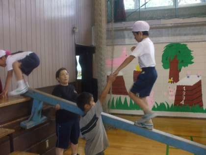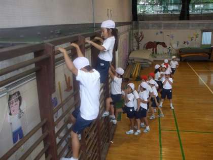 子どもたちは最初こそぎこちなく取り組んでいましたが、慣れてくると素速く、そして楽しそうに運動をしました。