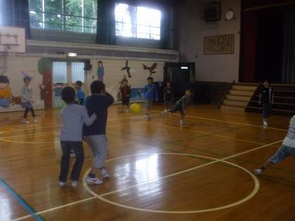 今日の「しほタイム」は体育館でドッジボールをしました。