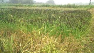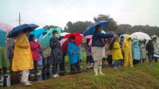 10:40 田んぼで栽培している古代米や黒米のお話を聞いています。