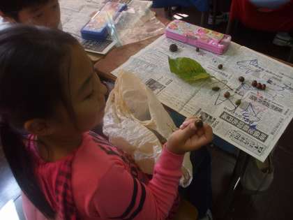 昨日、林試の森で集めてきたドングリを形ごとに分けました。