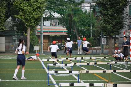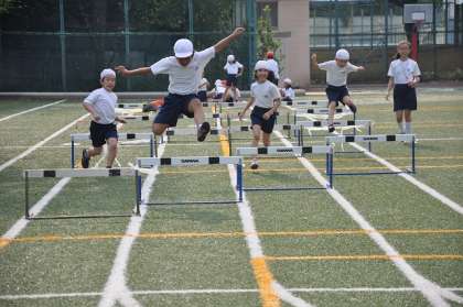 ハードルを自分たちで準備し、今日はタイムを設定しました。