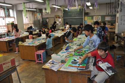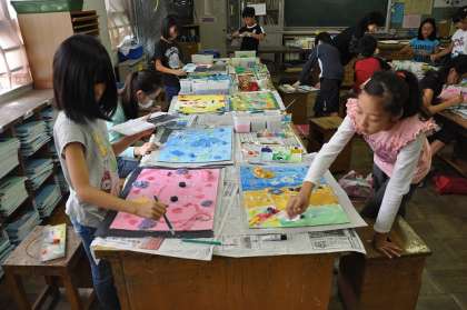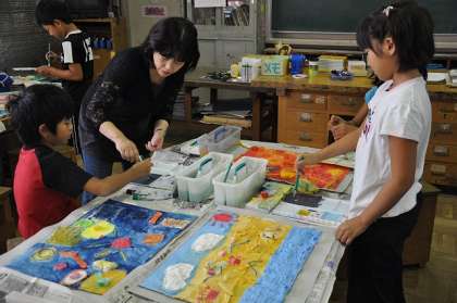 「でこぼこから広がる世界」の色塗りと仕上げを行いました。