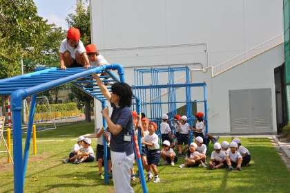雲梯やジャングルジムに登ったりぶら下がったりしました。