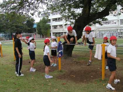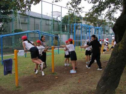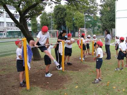 鉄棒運動をしました。