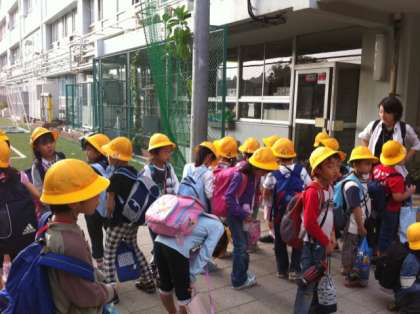 14:30 学校に着きました。子どもたちは疲れながらも頑張って歩きました。