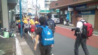8:45 玄関前に集合し、お話を聞いた後、出発しました。9:15に祐天寺駅に着きました。
