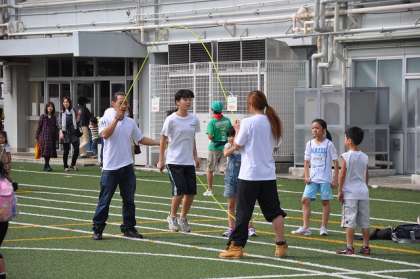 SSAの「ダブルダッチ部」が演技の練習をしています。