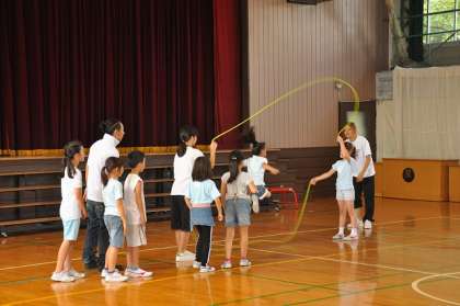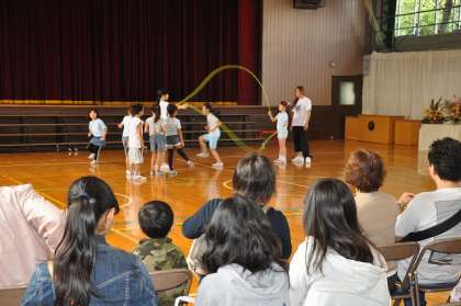 体育館でダブルダッチ部が演技をしました。