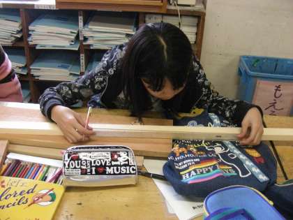 今日は鉛筆をつかって板に線を書いたり、やすりがけをしたりしました。
