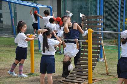 鉄棒や雲梯などを使った運動に取り組みました。