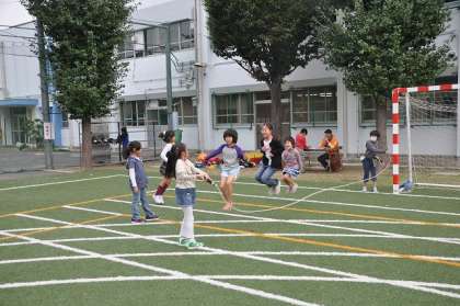 長縄をしたり、キャッチボールをしたりする子どもがいました。