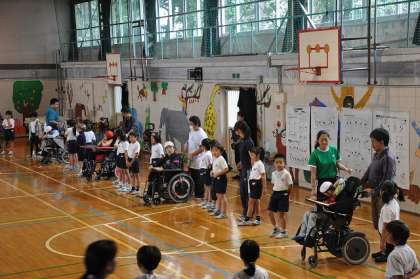22日にわかたけ学級が参加する連合運動会を前に2年生と交流をしました。
