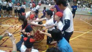 13:20中央体育館にいます。玉入れに頑張っています。