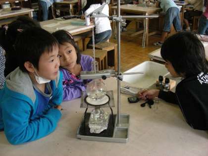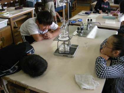 フラスコの中が曇ってきたり、水滴がついたりしてきます。また、泡となって水蒸気が出たり湯気が出たりもしました。